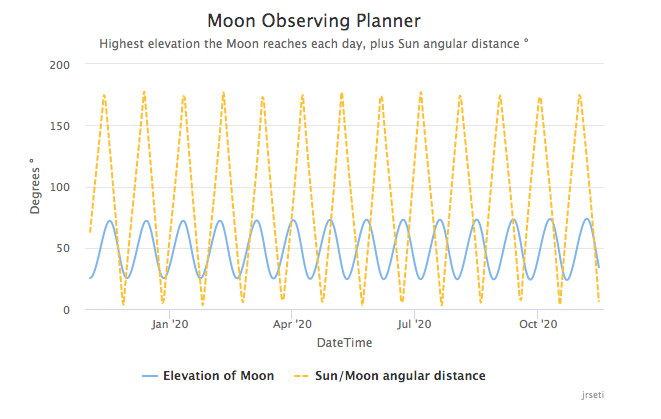 The best time to observe the moon is when it is highest in the sky while being angularly far from the Sun.